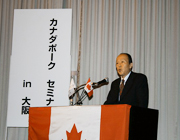 セミナーに先立ち、カナダ領事館のアラン・エドワーズ領事兼通商代表は、「カナダポークはヘルシーでジューシー、おいしいのが特徴で、世界100ヵ国以上に輸出している。安定的に安全で品質の良いポークの輸出を目標に置いている。家庭でも業務用でももっと利用してほしい」と挨拶しました。
