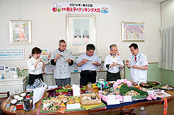 7月27日、「第22回世界親と子のクッキング大賞」(企画:辻ウェルネスクッキング)に協賛し、CPIで技術指導の最高責任者を務めるマイケル・ヤングが審査員として参加しました。この夏休み恒例のイベントには、関西各地域から書類選考を勝ち抜いた6チームが参加し、「カナダポークを使ったお弁当」というテーマで親子、力を合わせて日頃の料理の成果を競いました。優勝に輝いたのは、大阪府の小学一年生、道正 美智子ちゃんとおばあちゃんのペアです。尚、このイベントは8月21日(木)11:30よりTV大阪の30分番組で放映される予定です。