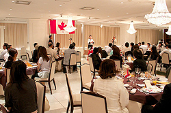 また7月28日は、大阪のホテル、中ノ島プラザ内のレストランにて「カナダポークセミナー & シェフのスペシャルディナー」が開催され、一般の消費者85名が参加しました。イベント冒頭でCPIの野村マーケティングディレクターがカナダポークの美味しさや安全性について説明し、その後マイケル・ヤングがカナダポークを使って北米でポピュラーなスタッフドポークの調理実演を披露しました。多くの参加者の皆様から、カナダポークに対する認識を新たにしました、という嬉しい反応を多くいただくことができました。セミナー終了後は、シェフによるカナダポークを使ったフレンチのフルコースが振舞われ、参加者はその美味しさに舌鼓を打ちました。