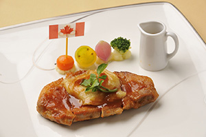 ランチコースのメインディッシュとして提供された「真空調理で“柔らかく仕上げたカナダポーク”ステーキフォアイヨ風」は、「柔らかくてとっても美味しい!!」と来場者から大好評でした。