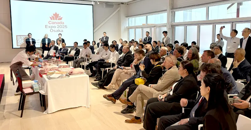 大阪・関西万博カナダ館にて、業界関係者約100名を招きカナダポークセミナーを開催しました。カナダから団体幹部や生産者代表が多数来日し、食の安全性に対する世界水準の取り組み、品質へのこだわり、そして輸出促進へのさらなる注力を強調しました。 またカナダポークのカッティング・デモンストレーションを通して、優れた肉質や高い歩留まりといった特長を改めてご紹介しました。カナダポークは日本市場における信頼と存在感を一層高め、今後も安全で高品質な製品の提供に努めてまいります。