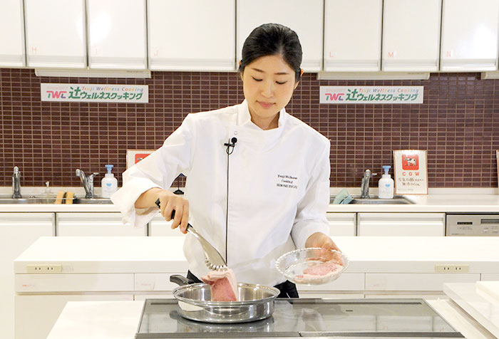 交野市から参加の川那辺チームはオーソドックスにポークチョップを調理、大阪市から参加の東久世チームはカナダポークのロースをとんかつに、その後とんかつをメインの具にしたカリフォルニアロール寿司と凝ったメニューで挑戦しました。